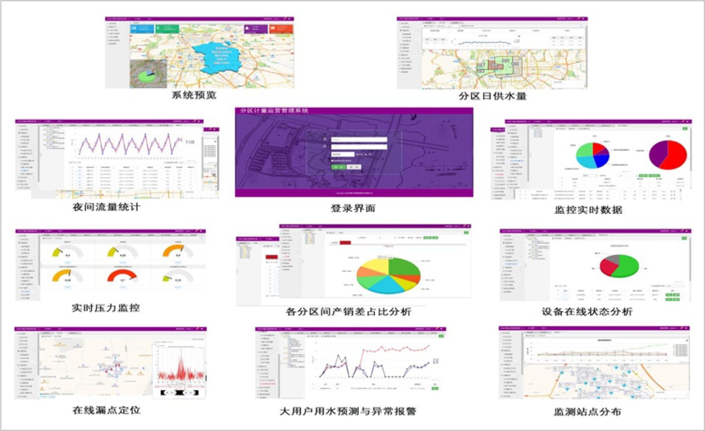 上??蒲舐┛毓芾硐到y(tǒng)應(yīng)用夜間最小流量,根據(jù)ALR理論,利用物聯(lián)網(wǎng),采用高端感知設(shè)備(例如A+k電磁水表、滲漏預(yù)警與漏點(diǎn)定位系統(tǒng))。漏控系統(tǒng)可在監(jiān)測到分區(qū)計(jì)量管理中的漏損區(qū)域后,快速預(yù)警到漏損管段。該系統(tǒng)是新一代信息技術(shù)與水務(wù)技術(shù)的深度融合,其充分發(fā)掘數(shù)據(jù)價(jià)值和邏輯關(guān)系,實(shí)現(xiàn)水務(wù)業(yè)務(wù)系統(tǒng)的控制智能化、數(shù)據(jù)資源化、管理精確化、決策智慧化,保障水務(wù)設(shè)施安全運(yùn)行,使水務(wù)業(yè)務(wù)運(yùn)營更高效、管理更科學(xué)和服務(wù)更優(yōu)質(zhì)。同時(shí)該系統(tǒng)可與水司已有營收系統(tǒng)、GIS系統(tǒng)、SCADA系統(tǒng)、水力模型等系統(tǒng)兼容,或納入水司綜合信息管理平臺(tái),助力水司智慧水務(wù)建設(shè)。